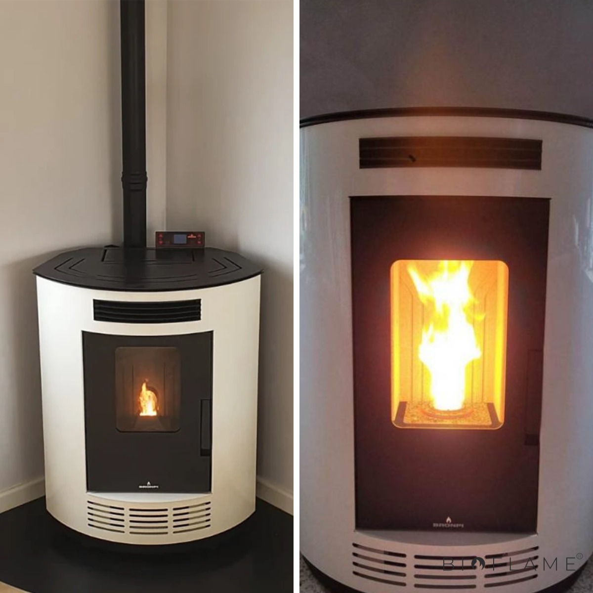 A salamandra a pellets NINA é ideal para quem procura uma lareira moderna de canto, perfeita para aquecer uma sala com até 200 m³. Com design elegante e interior em vermiculite, oferece alto rendimento (90–93%), potência de 9 kW e funcionamento programável. Compatível com internet (KIT WIFI) e canalização de ar quente, combina sofisticação, conforto e praticidade. Uma excelente escolha em fundição, com preço competitivo.