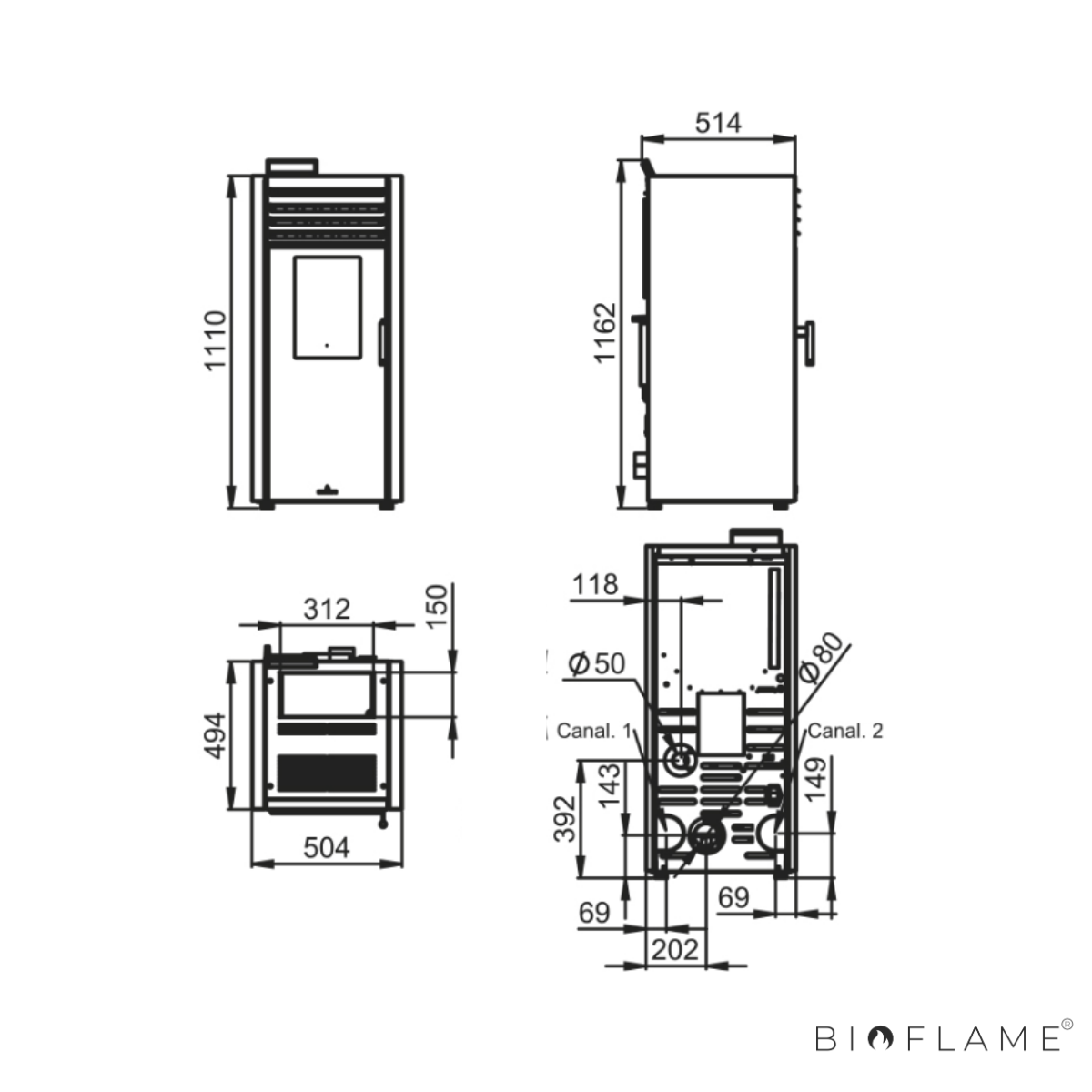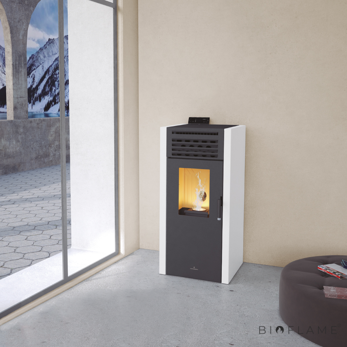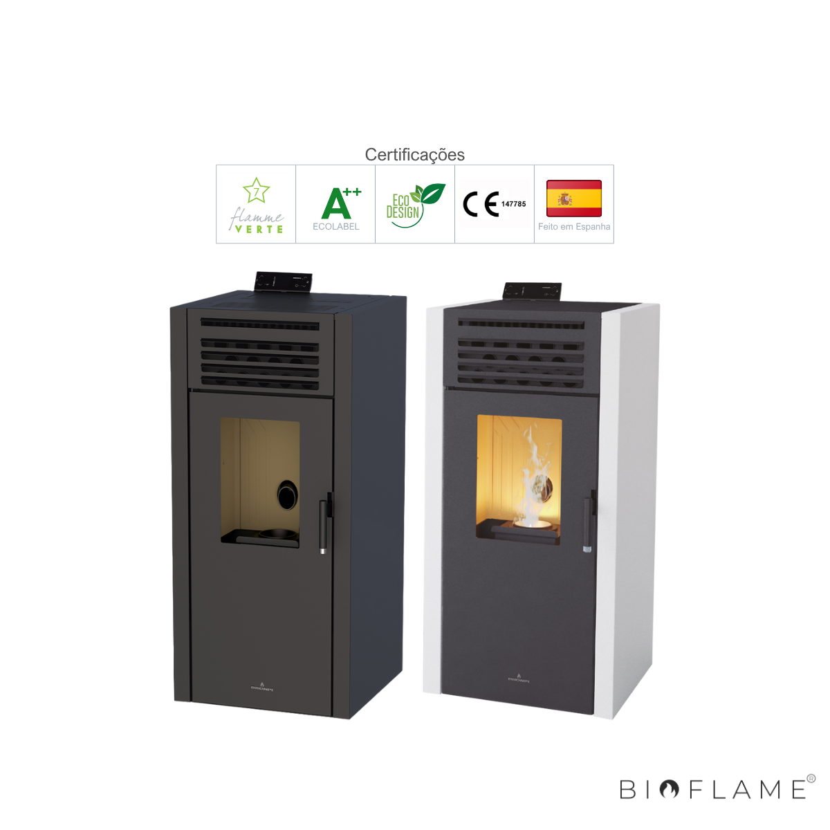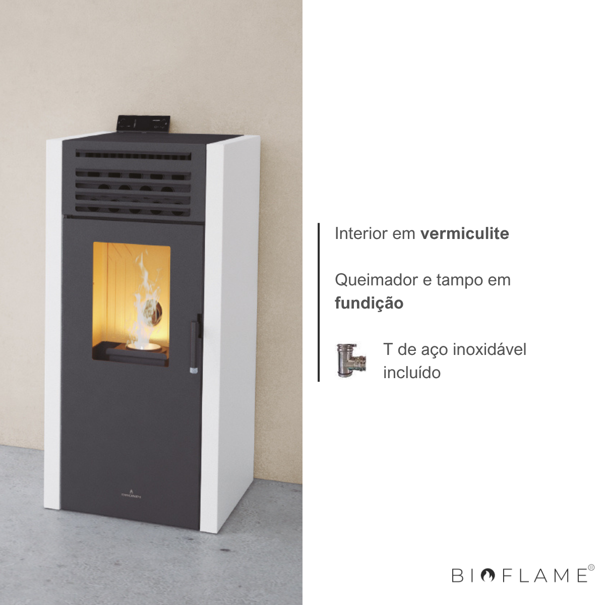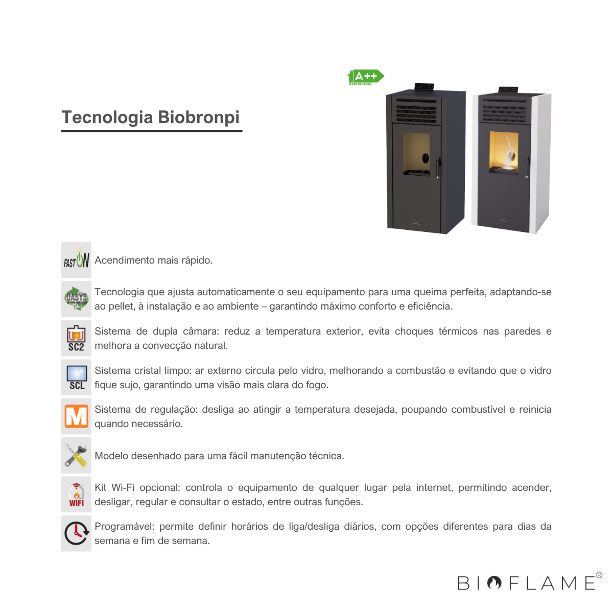 - Características: Resistência de cerâmica- aquecimento mais rápido, Sistema de dupla combustão, sistema de vidro limpo, Sistema de regulação, Fácil Manutenção, WIFI, Programação, Válvula de sobrepressão da câmara, T de aço inoxidável incluído, Comando à distância