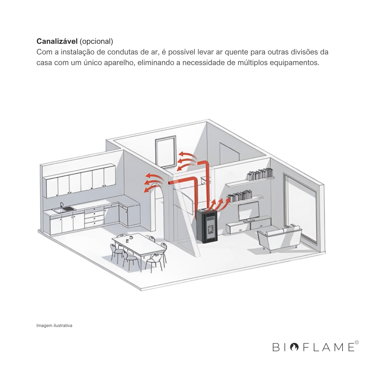A salamandra a pellets ADEL oferece alta potência (até 14,3 kW) e rendimento (92-94%), com queimador em fundição e interior em vermiculite, garantindo durabilidade e eficiência. Silenciosa e fácil de manter, conta com sistema de dupla câmara, cristal limpo e é compatível com kit WIFI e canalização de ar quente, ideal para salas grandes, apartamentos ou distribuição em várias divisões. Uma solução moderna e premium, que alia conforto, qualidade e facilidade de uso.