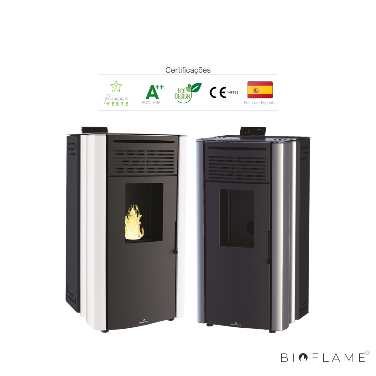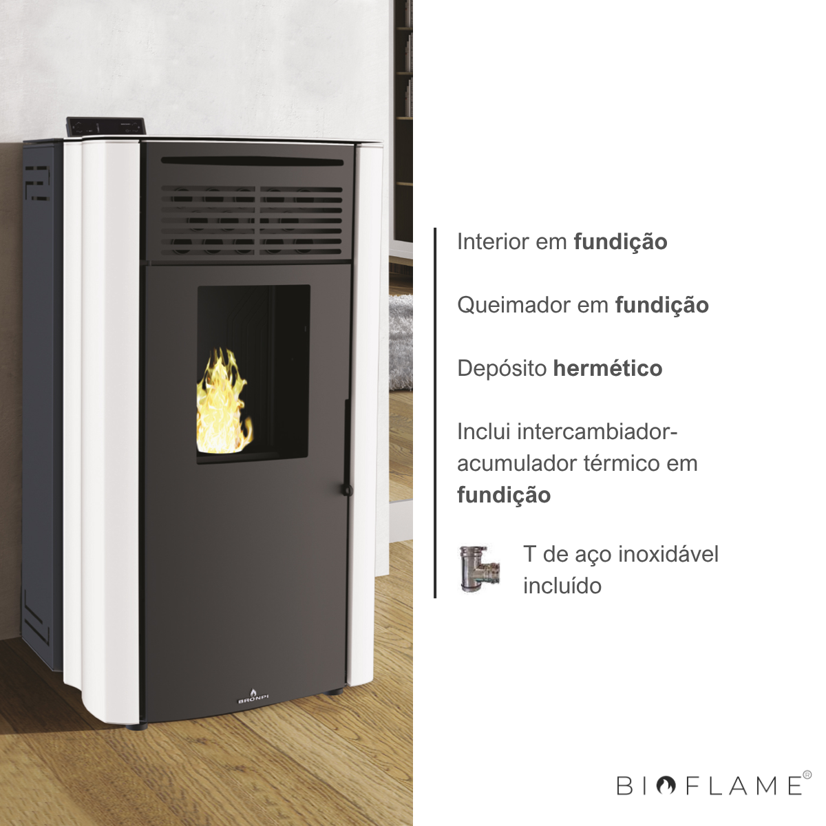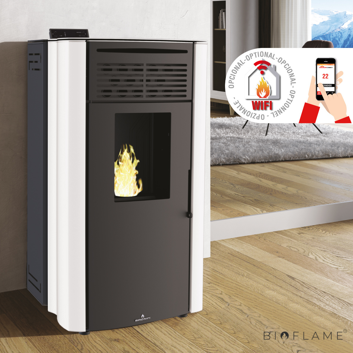 - Características: Resistência de cerâmica- aquecimento mais rápido, Sistema de dupla combustão, sistema de vidro limpo, Sistema de regulação, Fácil Manutenção, WIFI, Programação, Válvula de sobrepressão da câmara, T de aço inoxidável incluído, Comando à distância