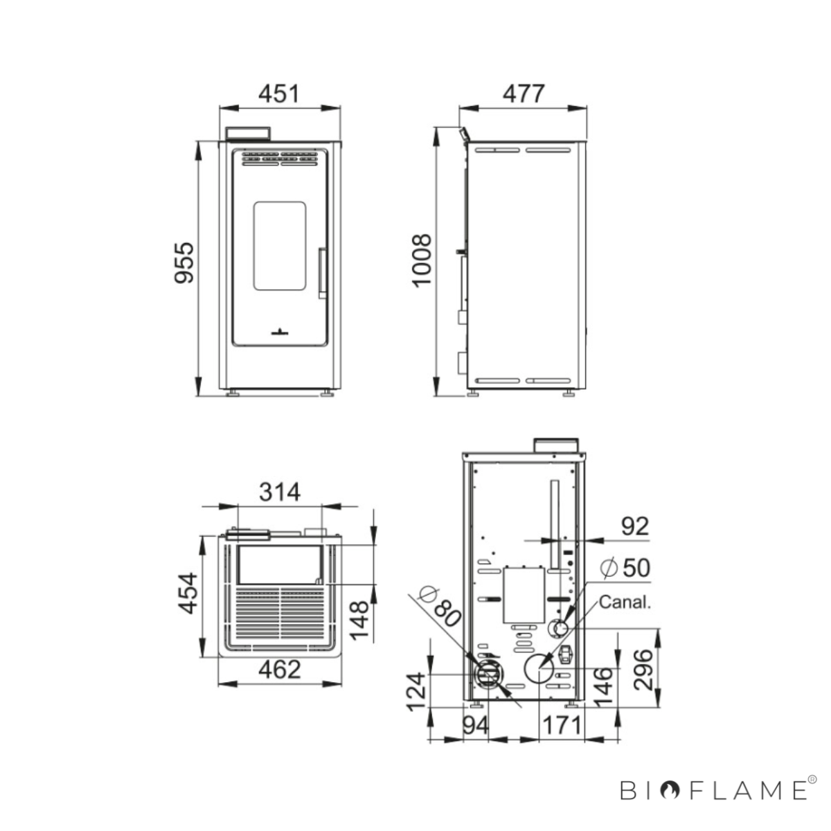 - Opcional: Kit Wifi, Kit de canalização para distribuição de ar quente (Sistema independente de canalização) - 5 metros, 1 saída, Comando à distância, kit de placas de fundição para o interior da câmara.
