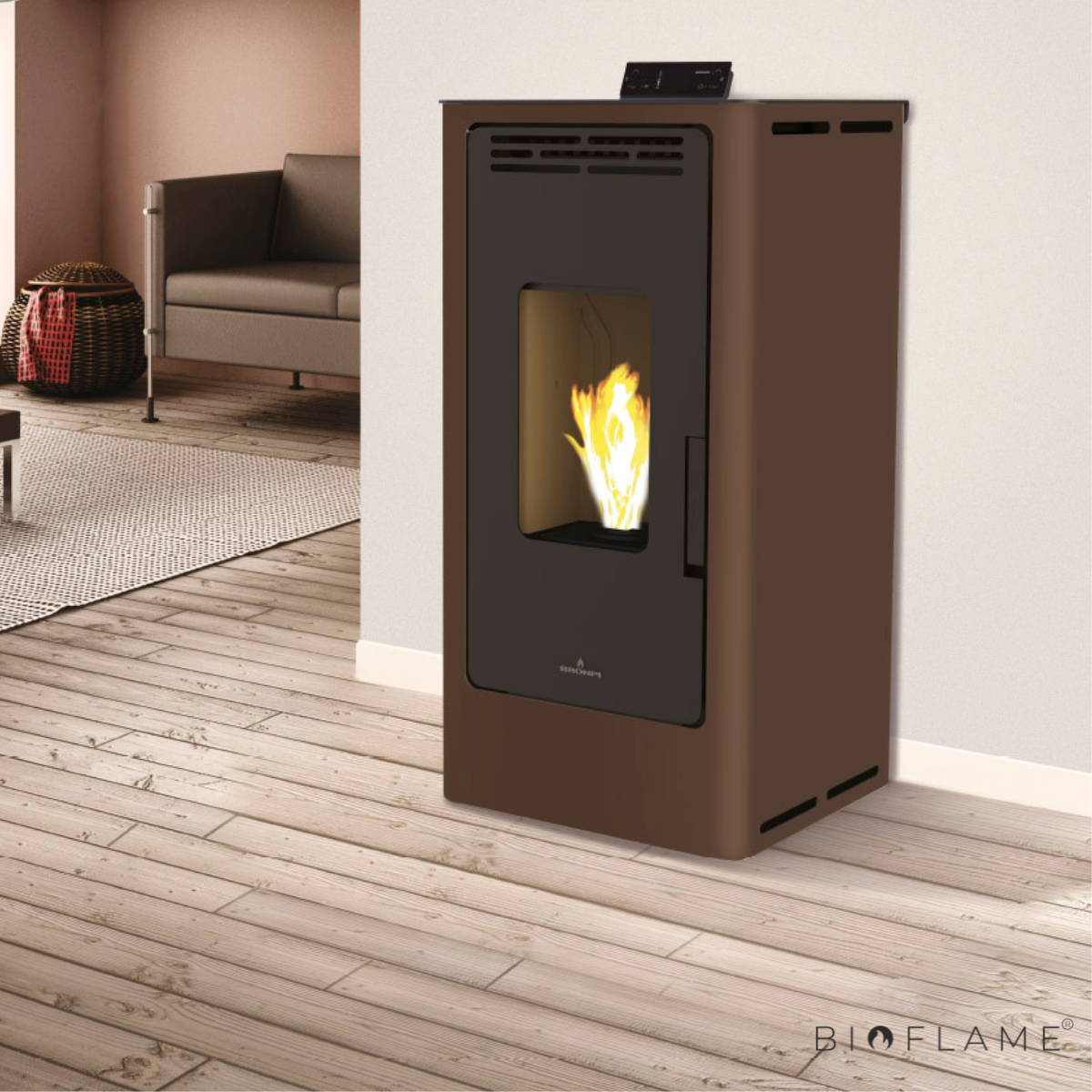 A salamandra a pellets Kira, em ferro fundido com interior em vermiculite, oferece até 9 kW de potência e rendimento acima de 90%, ideal para sala ou apartamento.. Com sistema de dupla câmara, cristal limpo e regulador programável, é fácil de usar e de manutenção simples. Compatível com kit WiFi, permite acesso pela internet e controlo à distância. Possui opcional de canalização de ar quente para melhor distribuição do calor. Uma solução moderna, eficiente e sofisticada para quem procura qualidade e conforto.