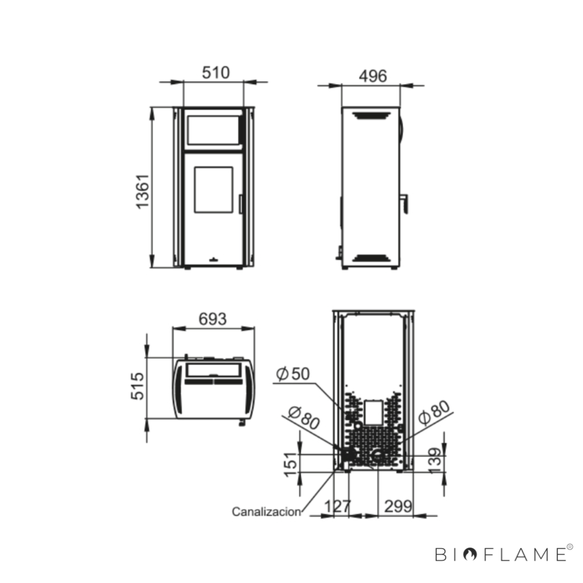 - Diâmetro Saída Fumo: 80 mm