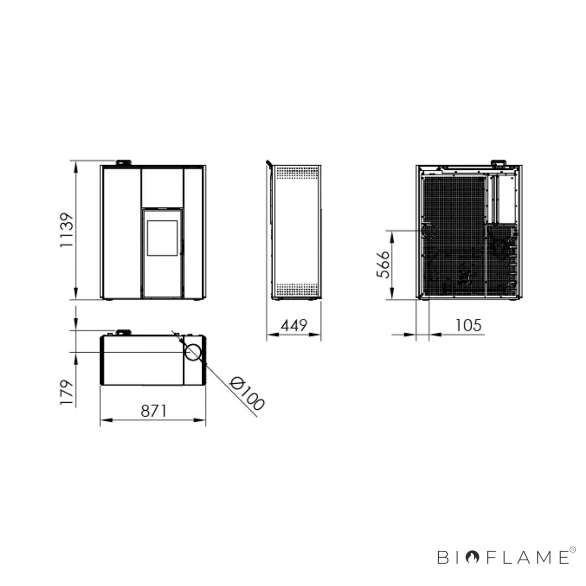 - Diâmetro Saída Fumo: 100 mm