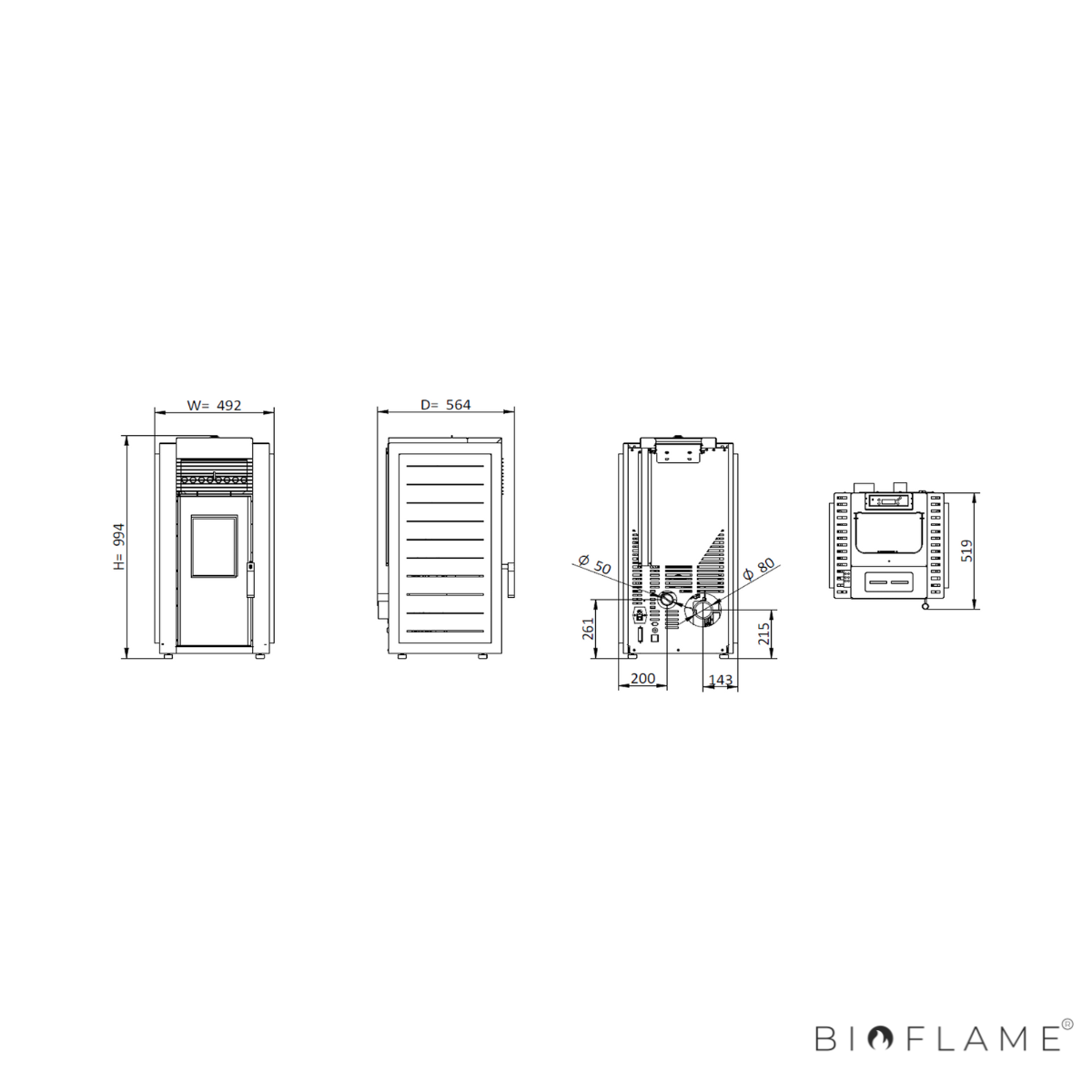 - Características: Comando à distância incluído, Controlo através de smartphone opcional, Possível ligar a um termostato externo, Display programável, Interior de alta resistência, Porta com sistema de vidro limpo, Fácil limpeza de turbuladores, Gestão de temperatura com sonda ambiente, Capas de fácil Instalação, Fácil manutenção.