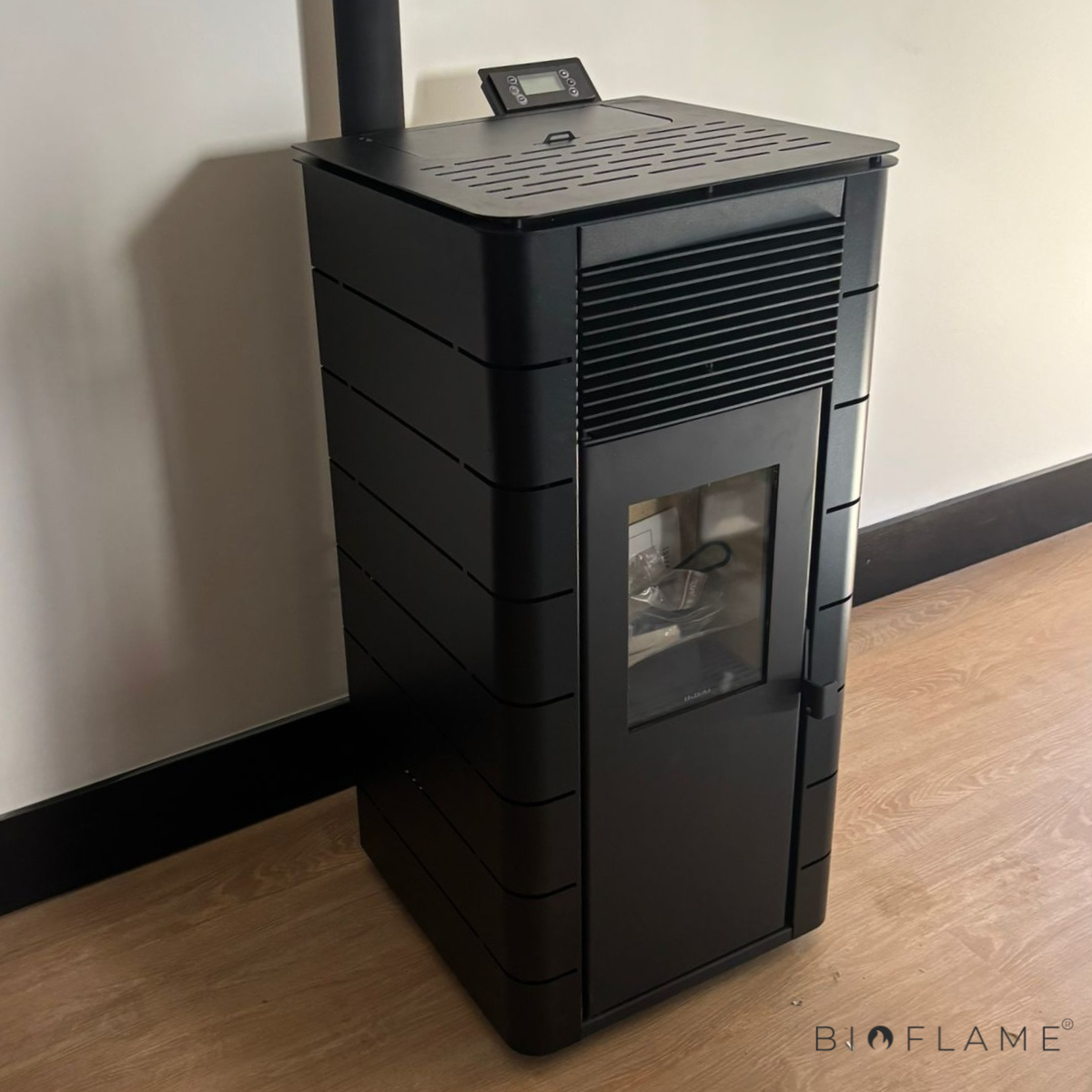 - Características: Comando à distância incluído, Controlo através de smartphone opcional, Possível ligar a um termostato externo, Display programável, Interior de alta resistência, Porta com sistema de vidro limpo, Fácil limpeza de turbuladores, Gestão de temperatura com sonda ambiente, Capas de fácil Instalação, Fácil manutenção.